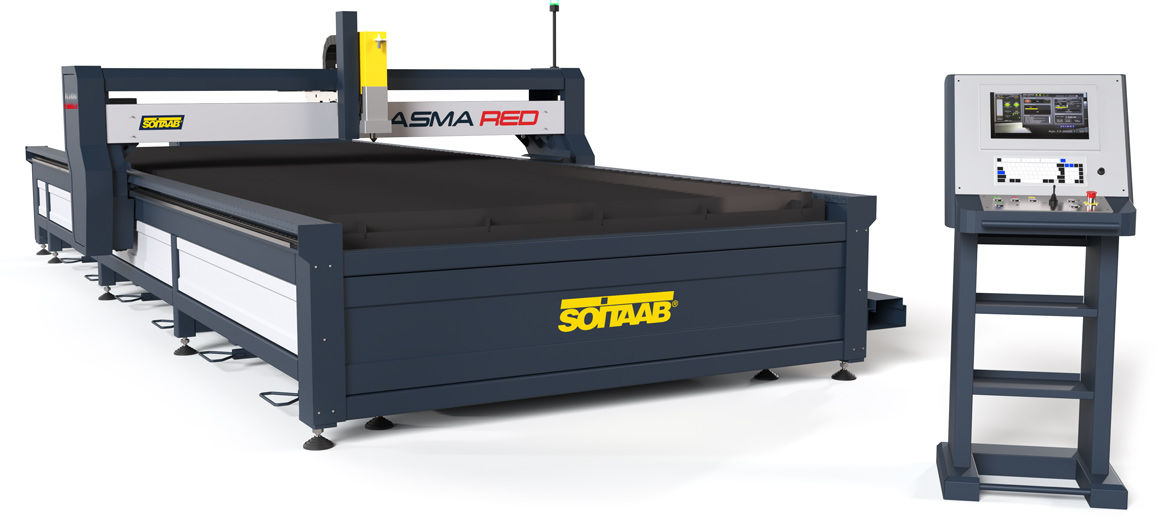 The CNC control with the operator interface SHMI - (Soitaab Human Machine Interface), specifically developed for the RED model, allows users to fully exploit the high potential of the machine from the very beginning. The accuracy of positioning is provided by means of the beam structure, the dual brushless drives on longitudinal axis with gantry control, linear guide ways and racks and pinions coupling together to the cutting table completely separated from the machine structure frame.