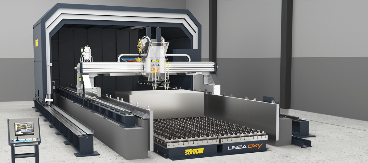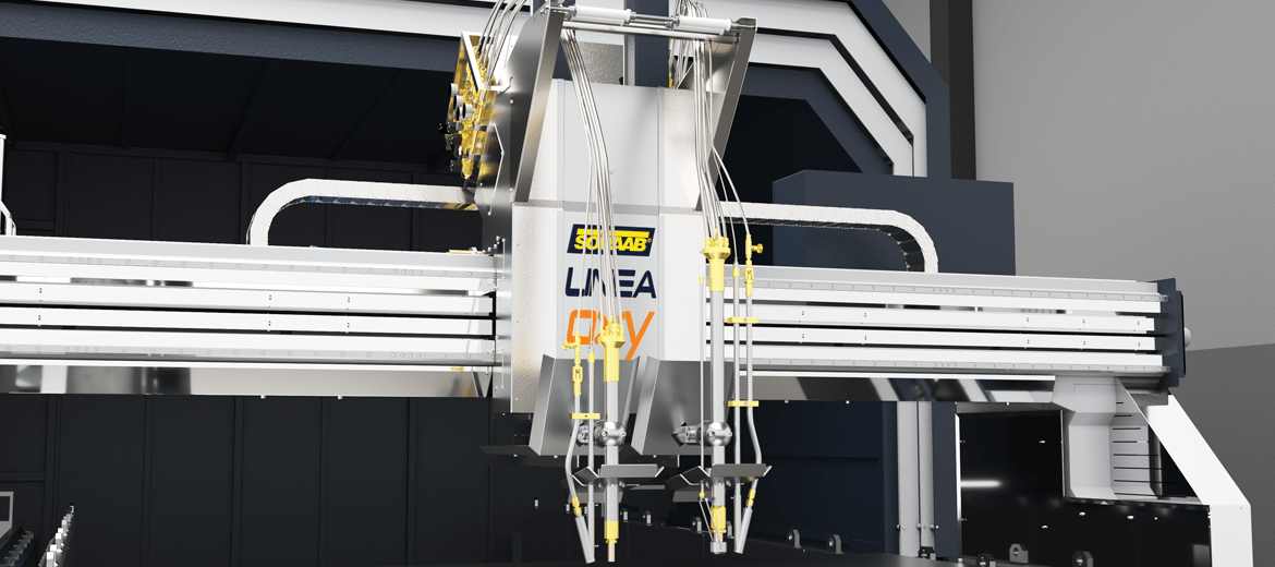 The LINEATECH HT OXY equipped with a special MTT torch, it allows quality cutting from 200 mm to 600 mm, while for higher thicknesses, with the second dedicated MT torch and adduction of iron powder, a cutting thickness of 1000 mm is reached.