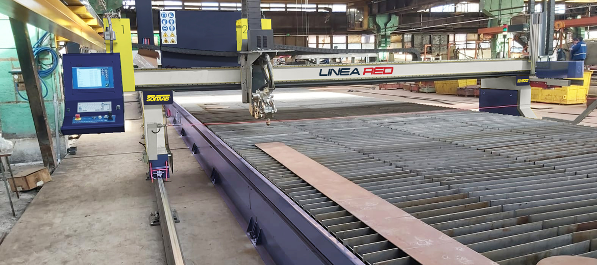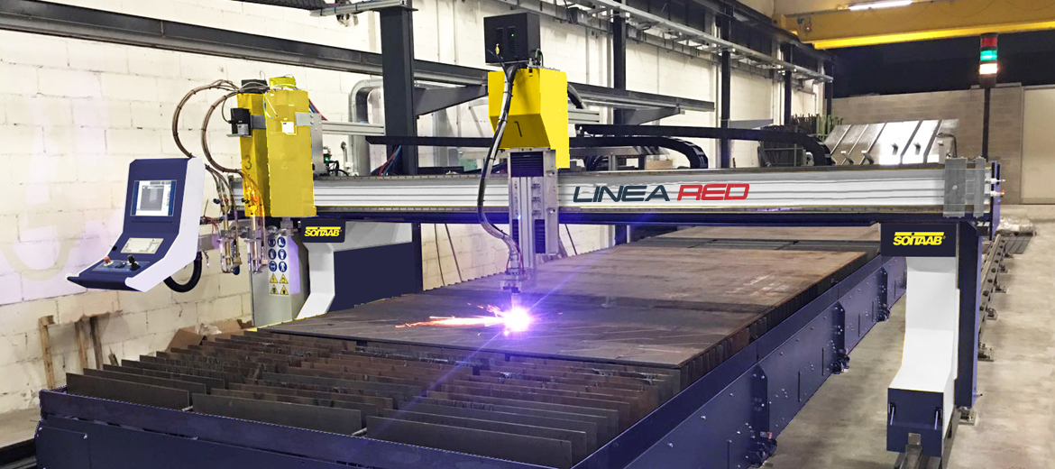 LineaTech RED can be equipped with up to 6 carts oxyfuel and plasma 2 trucks with a distance up to 5.500 mm and depending on the number of trucks covers a useful cutting width up to 4.500 mm.