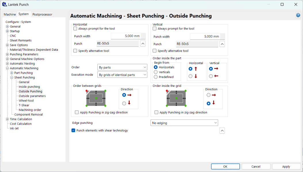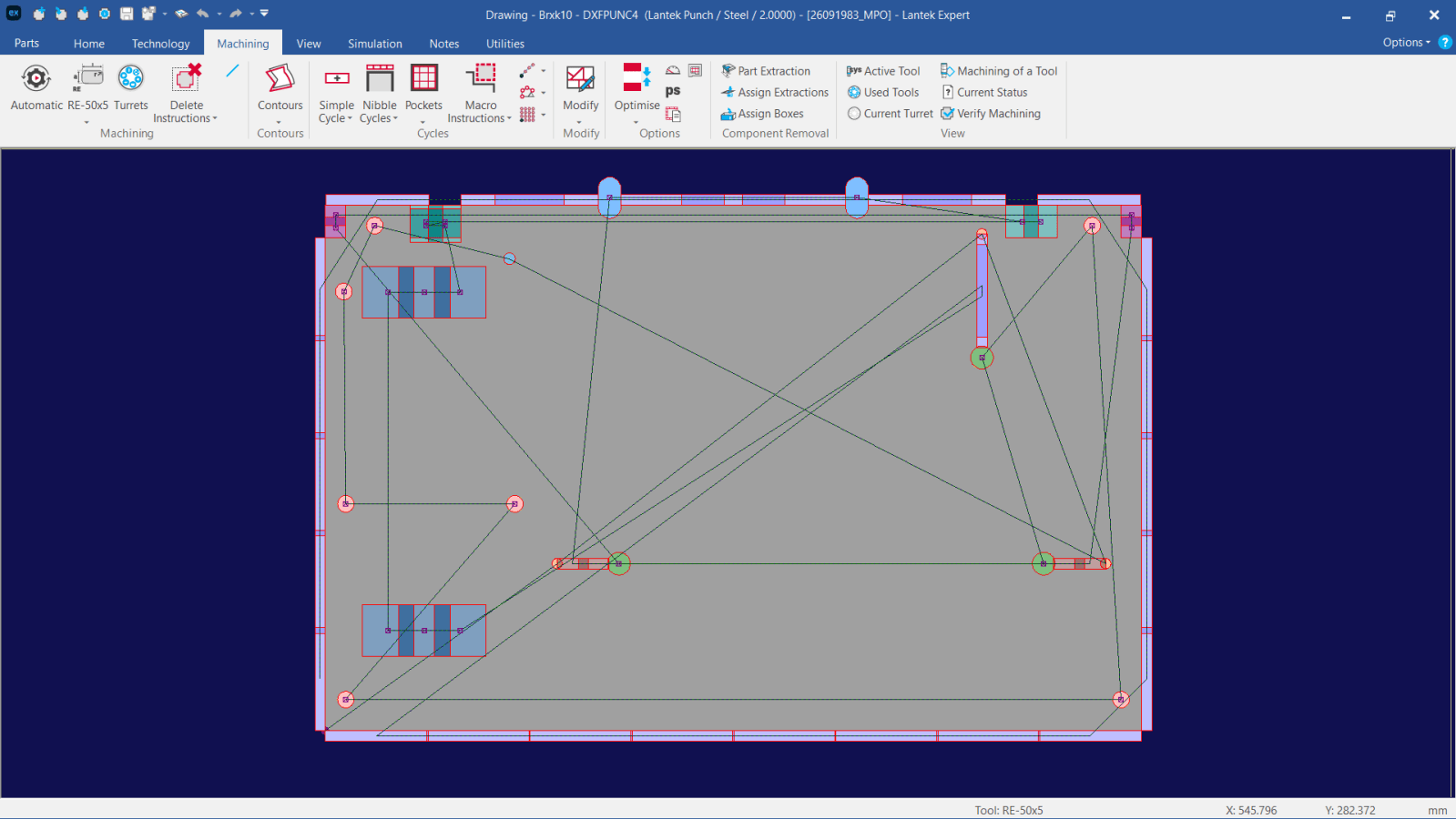 The machining of geometry in Lantek Expert Punch is totally automatic in accordance with the parameters that are configured by the user and in consideration of the machine limitations.Lantek Expert Punch stands out among competitors because of the functions it gives users for carrying out common punching on regular and irregular parts. This system manages the sheet reposition automatically, depending on different strategies chosen by the user. The modify option provided by Lantek allows the user to easily change machining order and sequence, micro-joints, punches, and more.