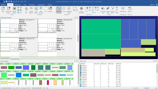 Software system specially designed for shear machines and optimized for nesting rectangular parts.