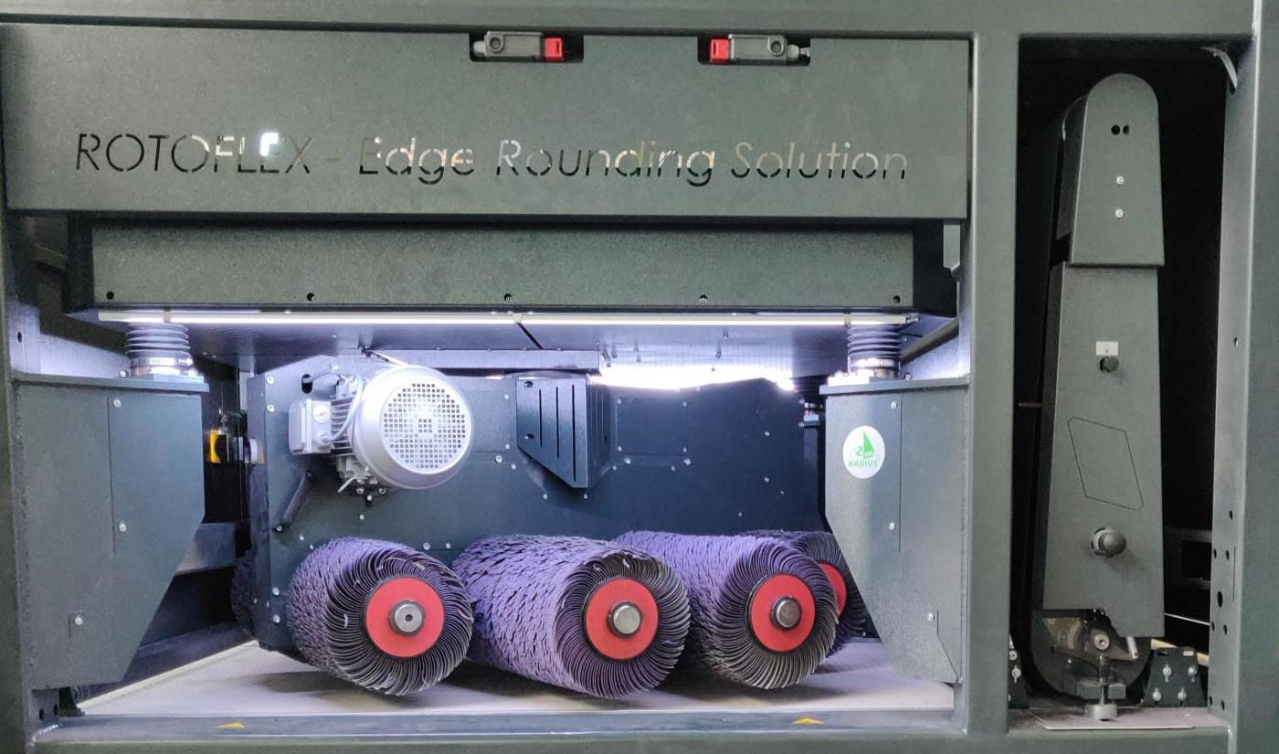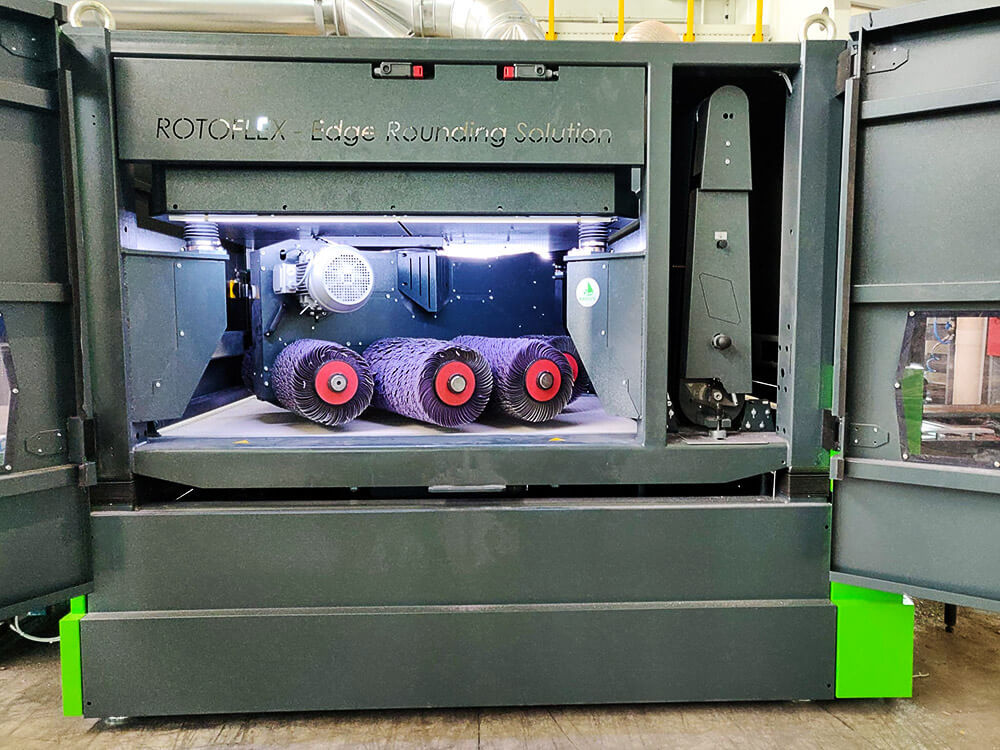 Powerful working unit that's only available on the EMC Rotoflex machine. Performs deslagging, deburring, grinding, oxide removal and edge rounding up to 2 mm with a single pass. |