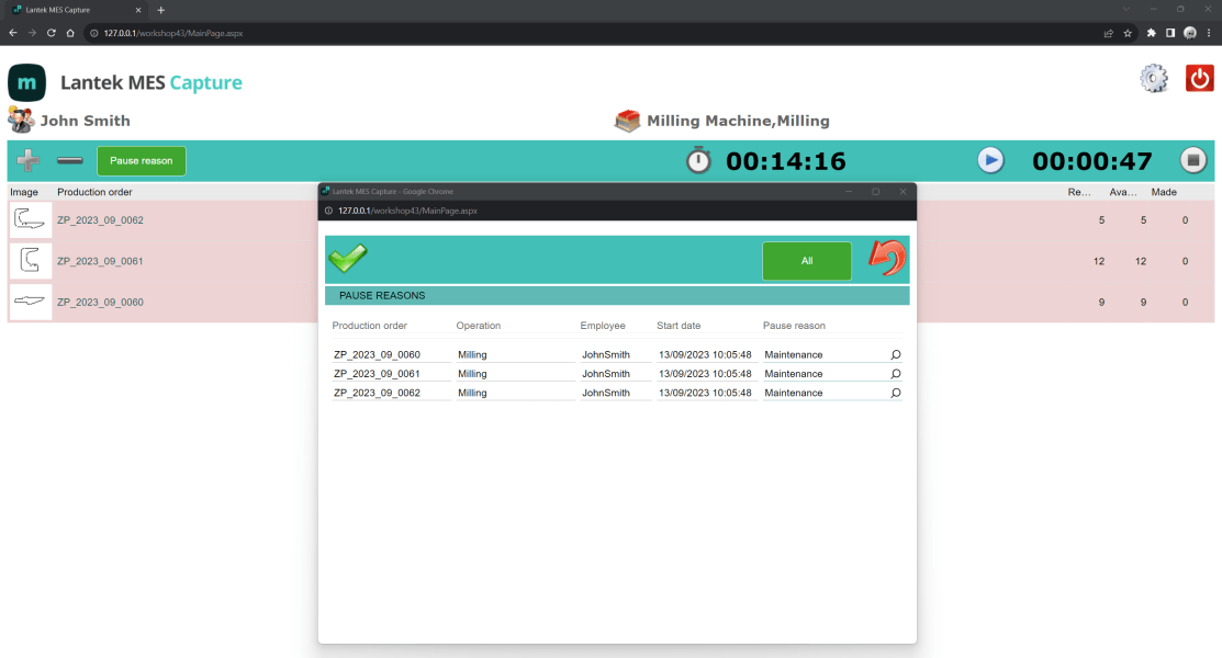 Lantek MES Capture can be used to integrate all the company’s operations within a single system and to report on what happens in the workshop. The operator can halt the process or identify deviations at the time when they occur.