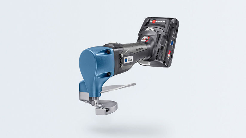The TruTool S 250 18V LiHD is the only rechargeable battery shear capable of cutting sheet thicknesses of 2.5 mm in mild steel and 1.5 mm in stainless steel. With this tool you always have an unrestricted view of the work surface and the cutting line. In addition, the compact machine is extraordinarily powerful and you can work without tiring, using only a low feed force. Curves can also be processed effortlessly. This is made possible by the perfectly coordinated geometry of the cutter, cutting table and hand protection. In addition, any collision with the sheet metal chip is avoided during the cutting process, ensuring a very high level of operator protection.No exertion